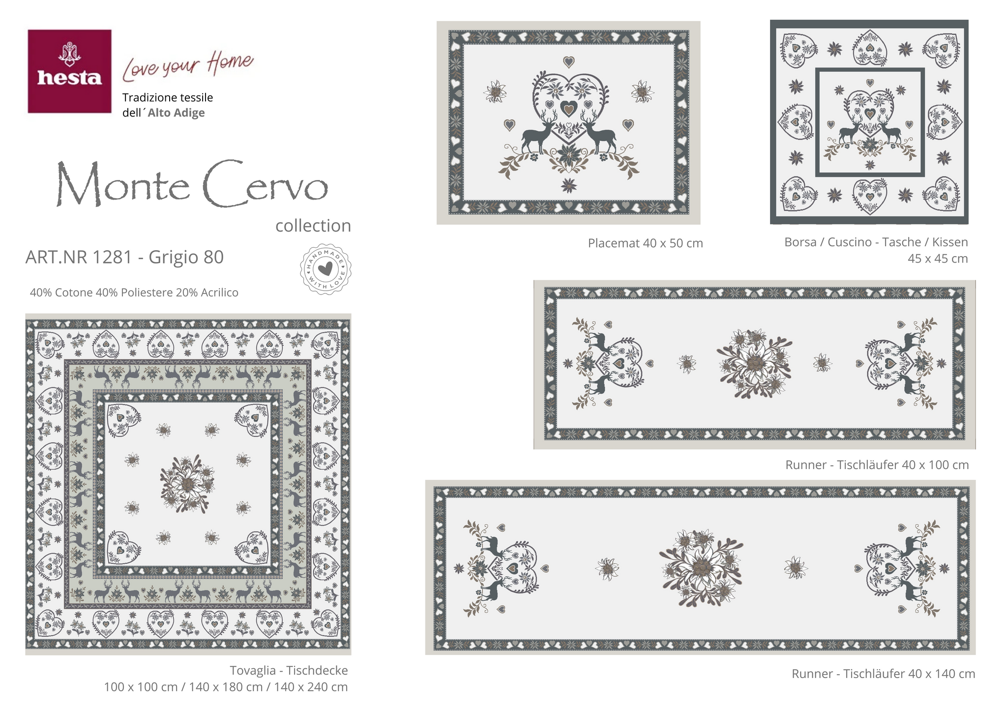 Tovaglia MONTE CERVO GRIGIO, uni, Gobelin Jacquard
