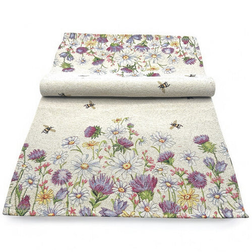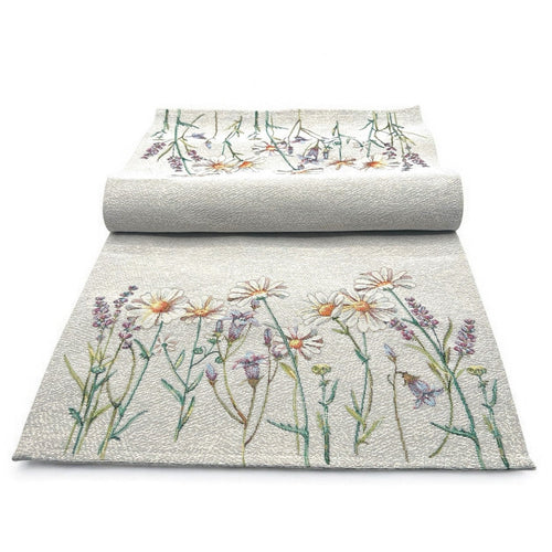 Tischläufer Runner Tischset WIESENBLUMEN, uni, Gobelin Jacquard