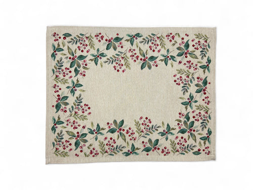 Tischläufer Runner Tischset WINTER BERRIES, uni, Gobelin Jacquard